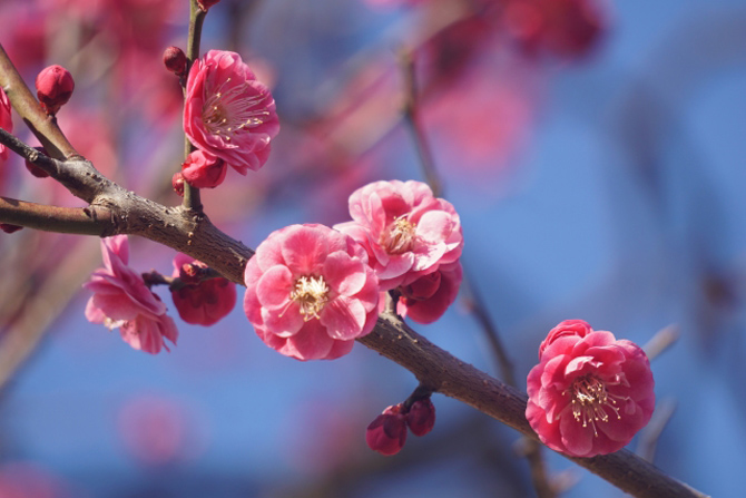 他に梅見月(うめみつき)木の芽月(このめつき)等の別名もある。旧暦二月は新暦では3月ごろに当たり、梅の花が咲く時期でもあります。